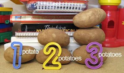 But knowing this when you teach counting is quite helpful. At home you can do something similar to the potatoes in the pictures above. At school, you can buy some great posters (I found one at Teacher’s Heaven last night) that demonstrate this.
