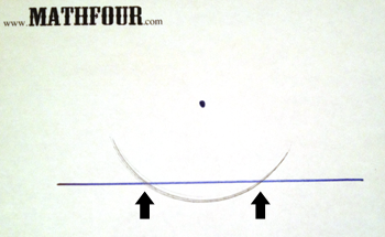 I made an arc from the point through the line, so I would have two spots on the line (where the circle piece went through):