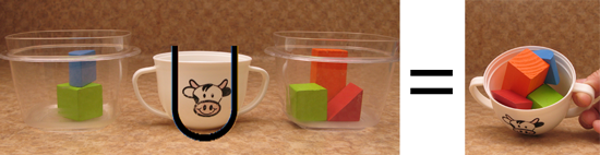 L ={green cube, blue half circle thingie}
